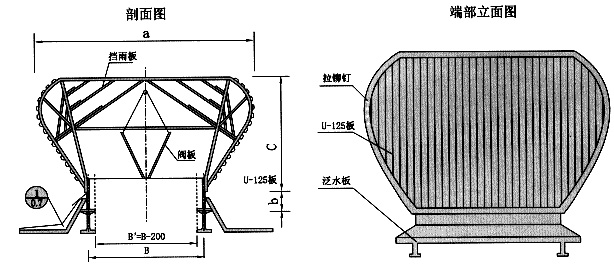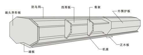 注:風(fēng)荷載為1200Pa屋頂通風(fēng)器每L 3米 組成一個(gè)單元,所以完整的屋頂通風(fēng)器由兩個(gè)端頭單元和若干個(gè)中間單元組成,電源380V、 50Hz。