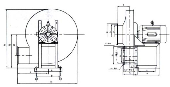 特點:采用A式直聯傳動,風壓高、效率高、高效區寬、結構緊湊、運行可靠 |